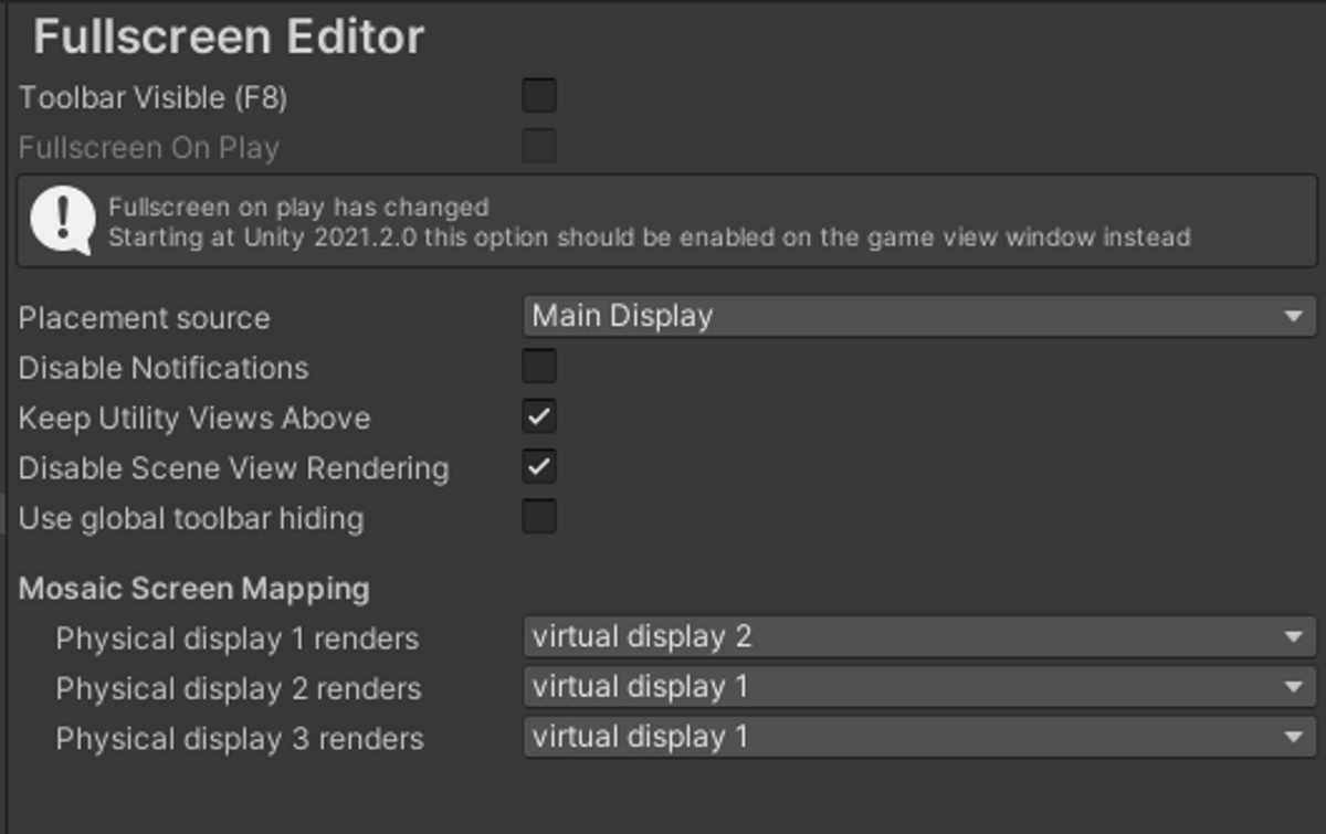 バーチャルカメラとUnity Editorフルスクリーン化+マルチディスプレイを組み合わせると、以下の障害があった。