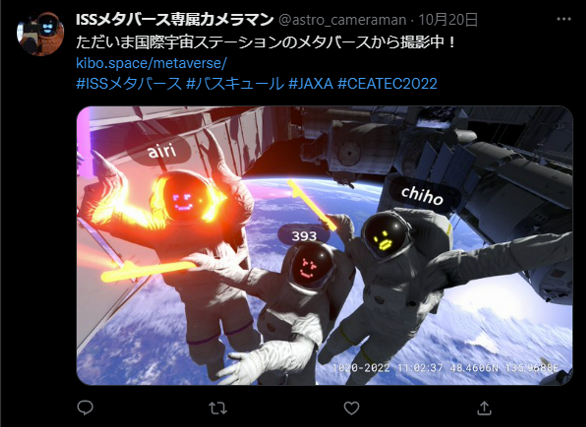 THE ISS METAVERSEではカメラマンが記念写真を撮ってTwitterにアップする仕組みがある。